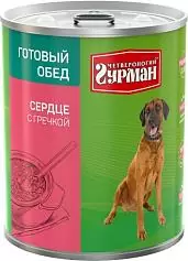 Влажный корм для собак Четвероногий Гурман Готовый обед сердце с гречкой