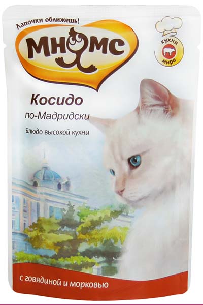 | Краткое описание | Мнямс паучи для кошек Косидо по-Мадридски (говядина с морковью) |