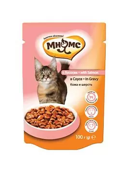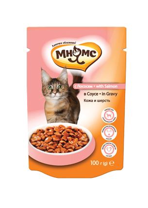 Влажный корм для кошек Мнямс пауч Кожа и шерсть лосось в соусе