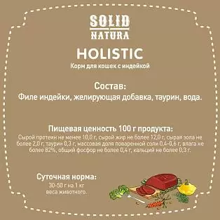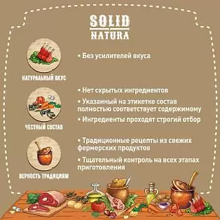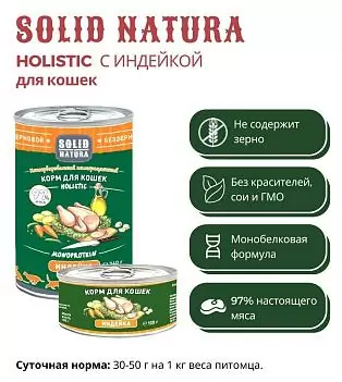 | Краткое описание | Solid Natura с индейкой - консервированное влажное питание для кошек. |