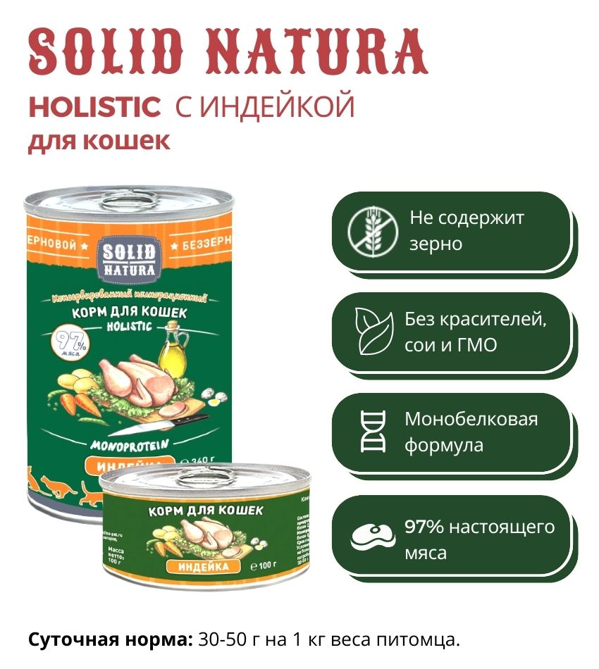 Solid Natura с индейкой - консервированное влажное питание для кошек.- Беззерновое.