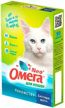 Лакомство для кошек Омега NEO Блестящая шерсть 90 таб.
