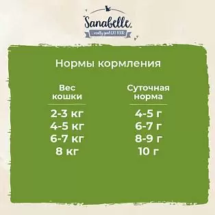Побалуйте свою кошку полезным и вкусным лакомством Санабелль Хэабол. Благодаря высокому содержанию жира и специальному ингредиенту - семенам подорожника, в сочетании со специально подобранной клетчаткой, Sanabelle Hairball Snack препятствует формированию волосяных комочков. Шерсть не накапливается в желудке и не срыгивается, а выводится из желудочно-кишечного тракта животного естественным образом. Супер-премиальное лакомство для Вашего любимца Sanabelle Hairball Snack гармонично дополнит его ежедневный рацион.Состав Sanabelle Hairball Snack (Санабель Хэабол)