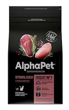Сухой корм для кошек AlphaPet Superpremium с уткой и индейкой для стерилизованных