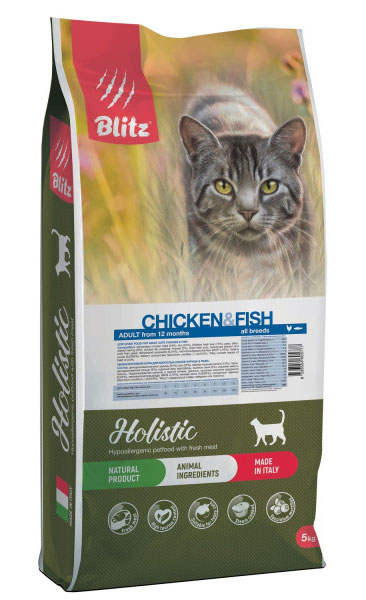 Сухой корм для кошек Blitz Adult низкозерновой с курицей и рыбой