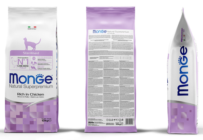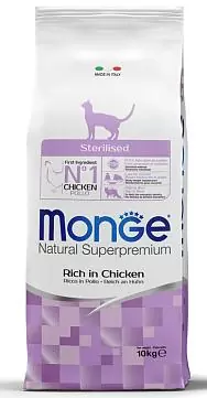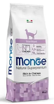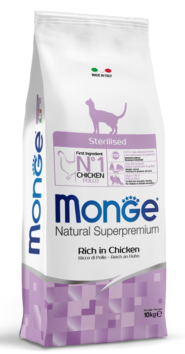| Краткое описание | Monge Sterilised. Сухой корм Монж с курицей предназначен для взрослых стерилизованных кошек всех пород. По ингредиентному составу относится к кормам суперпремиум класса. Содержит все витамины и минеральные вещества необходимые для повседневного здорового питания вашего питомца. |