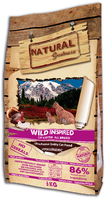 | Краткое описание | Natural Greatness Wild Instinct. Беззерновой сухой корм Натурал Гритнес с индейкой и курицей предназначен для кошек всех размеров и возрастов. По ингредиентному составу относится к кормам класса холистик. Подходит для чувствительного пищеварения, помогает выведению и предотвращению образования комочков шерсти. |