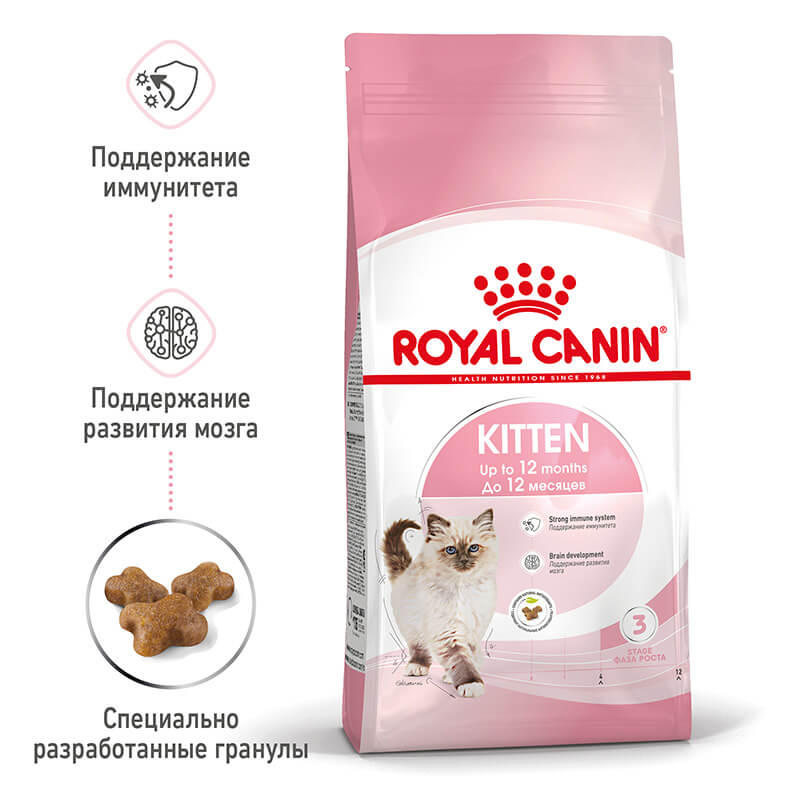 Продукт ROYAL CANIN® Kitten разработан с учетом потребностей в питательных веществах котят в возрасте от 4 до 12 месяцев, вступающих в период значительных перемен физического состояния и поведения.