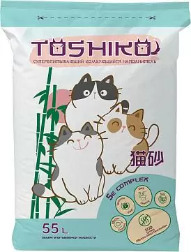 | Краткое описание | Растительный наполнитель Toshiko (Тошико) изготавливается из органических волокон хвойных пород деревьев и создан на основе инновационного комплекса 5E, позволяющего Вам проявлять заботу о питомце с легкостью. При попадании жидкости наполнитель образовывает плотный комок, который можно утилизировать в канализацию и нет необходимости в полной замене наполнителя в лотке. Не содержит вредных добавок или химических составляющих. Toshiko Натуральный не имеет отдушек и ароматизаторов, обладает ненавязчивым древесным запахом, при этом неприятные запахи не просто маскирует, а деактивирует |