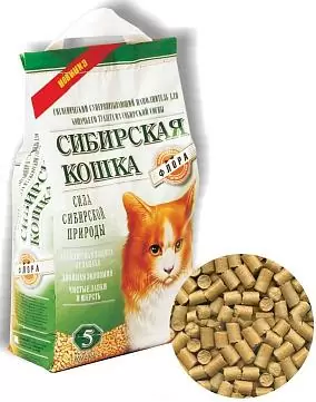 Наполнитель Сибирская Кошка Флора впитывающий древесный без запаха 3кг 5 л