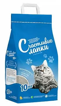 Наполнитель Счастливые Лапки комкующийся минеральный без запаха 10кг