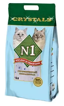 Наполнитель N1 Crystals для кошачьего туалета впитывающий силикагель без запаха 2,1кг 5 л