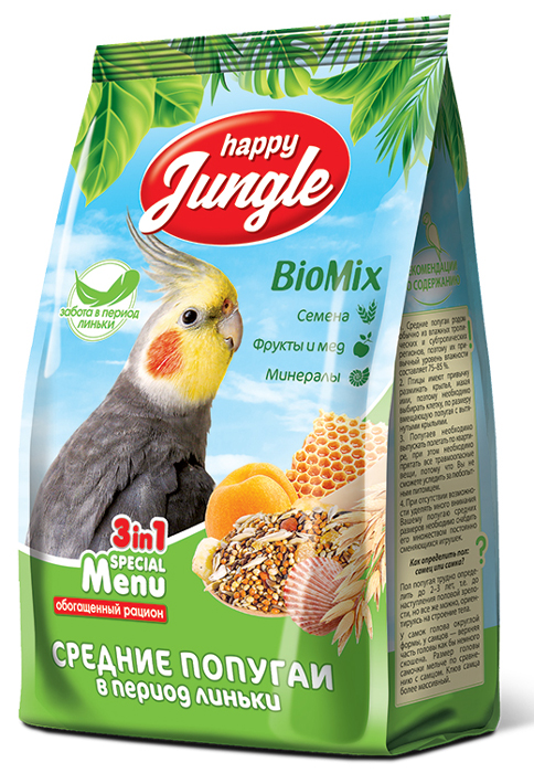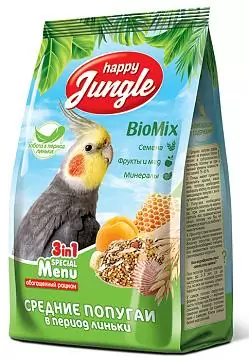 Сухой корм для средних попугаев Happy Jungle при линьке