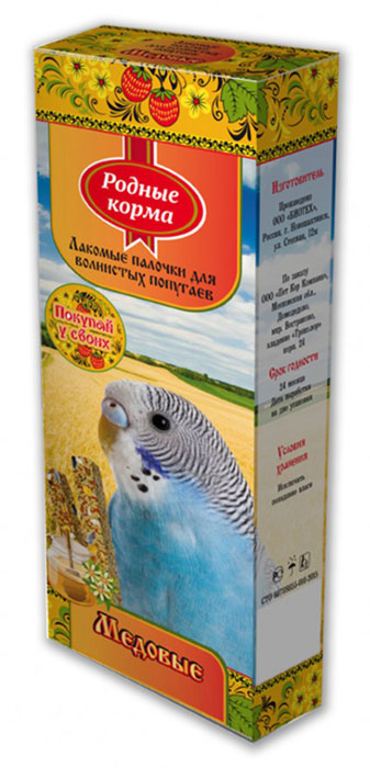 | Краткое описание | Лакомые палочки «Родные корма» с медом для попугаев являются отличным и вкусным дополнением к ежедневному корму Вашего питомца. Лакомство изготовлено из натуральных компонентов скрепленных яичной основой. |