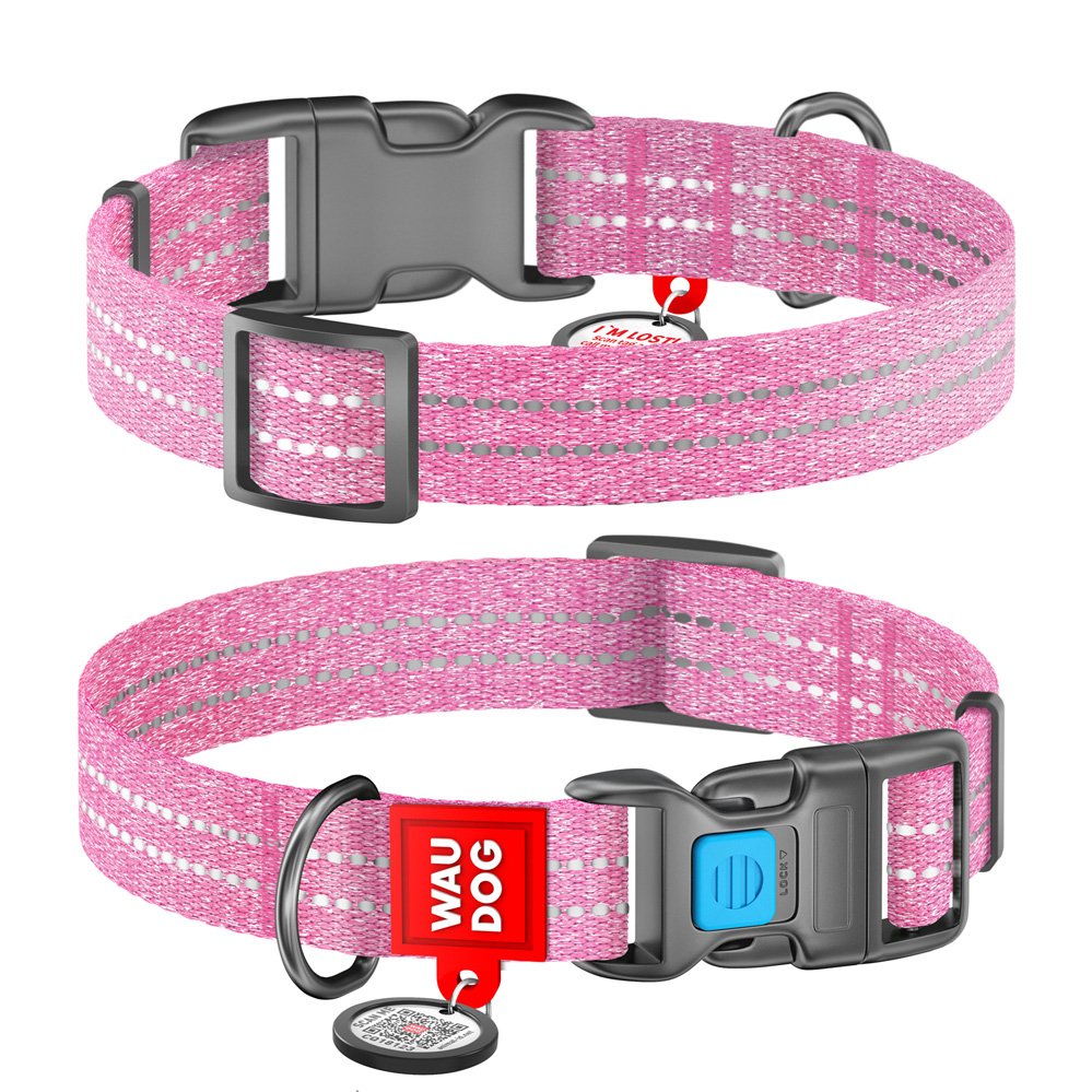Ошейник Waudog из восстановленного хлопка Re-cotton с QR паспортом светоотражающий пластиковый фастекс размер S восстановленный хлопок 23-35x1,5 см