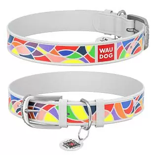 Ошейник Waudog кожаный Design с QR паспортом рисунок "Витраж" размер S кожа 27-36x1,5 см