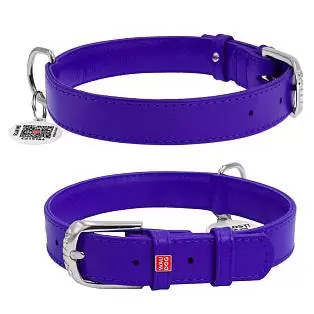 Ошейник Waudog кожаный Glamour с QR паспортом без украшений размер M кожа 38-49x2,5 см