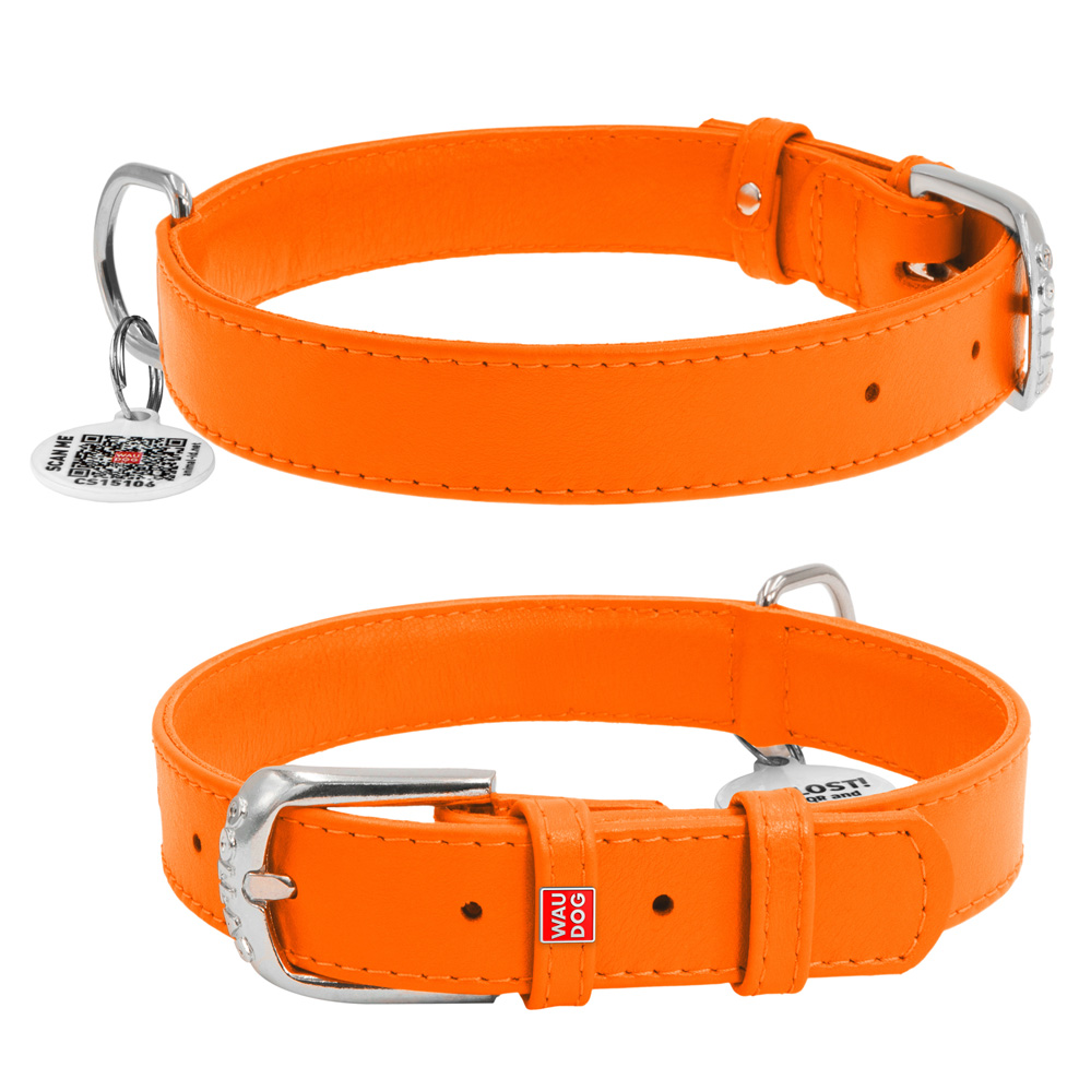 Ошейник Waudog кожаный Glamour с QR паспортом без украшений размер S кожа 30-39x2 см