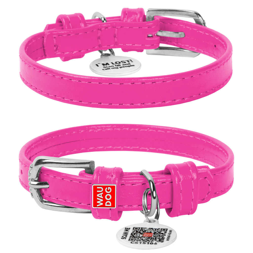 Ошейник Waudog кожаный Glamour с QR паспортом без украшений размер XS кожа 27-36x1,5 см