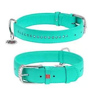 Ошейник Waudog кожаный Glamour с QR паспортом двойной со страз размер L кожа 46-60x3,5 см