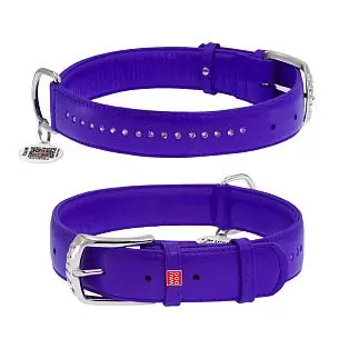 Ошейник Waudog кожаный Glamour с QR паспортом двойной со страз размер M кожа 38-49x2,5 см