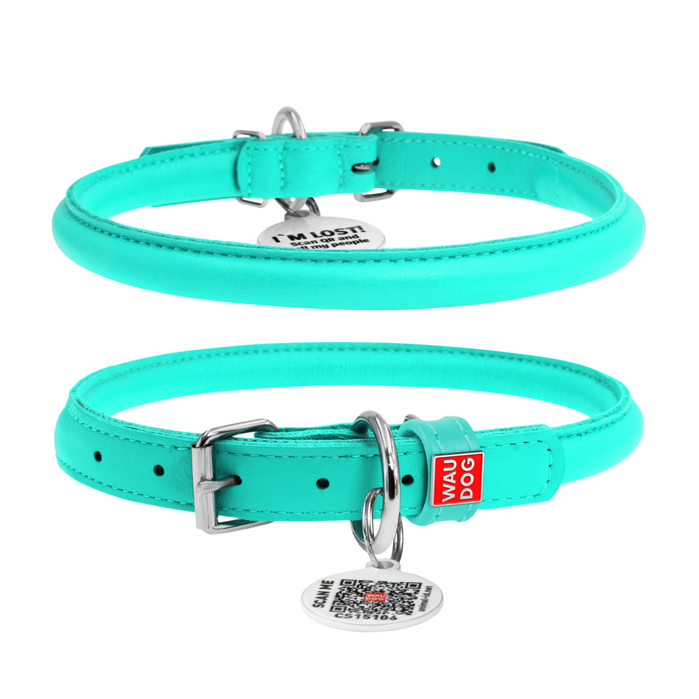 Ошейник Waudog кожаный Glamour с QR паспортом круглый размер XL кожа 53-63x13 см
