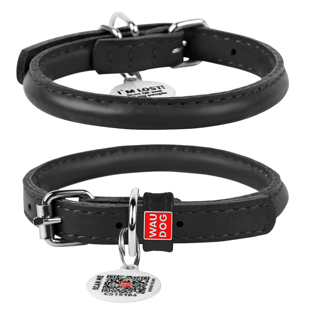 Ошейник Waudog кожаный Glamour с QR паспортом круглый размер XS кожа 20-25x8 см