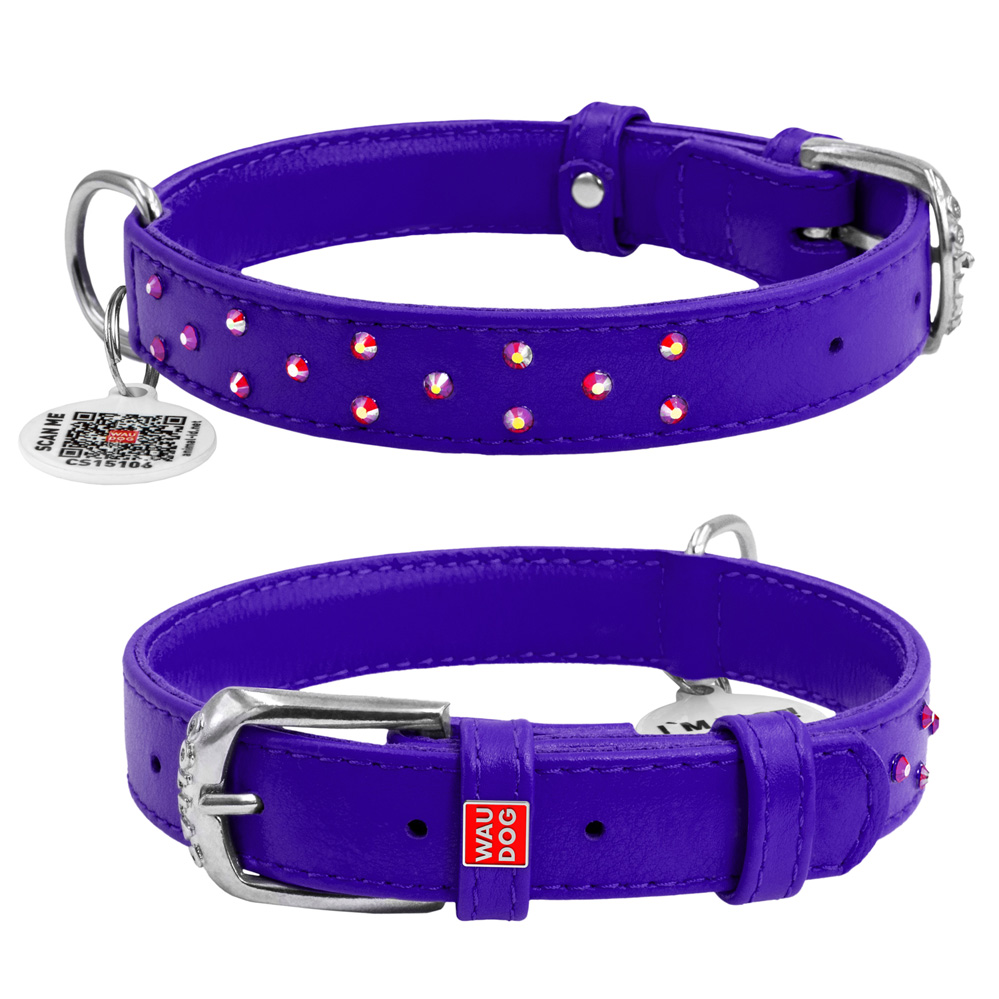Ошейник Waudog кожаный Glamour с QR паспортом с клеевыми стразами размер M кожа 38-49x2 см