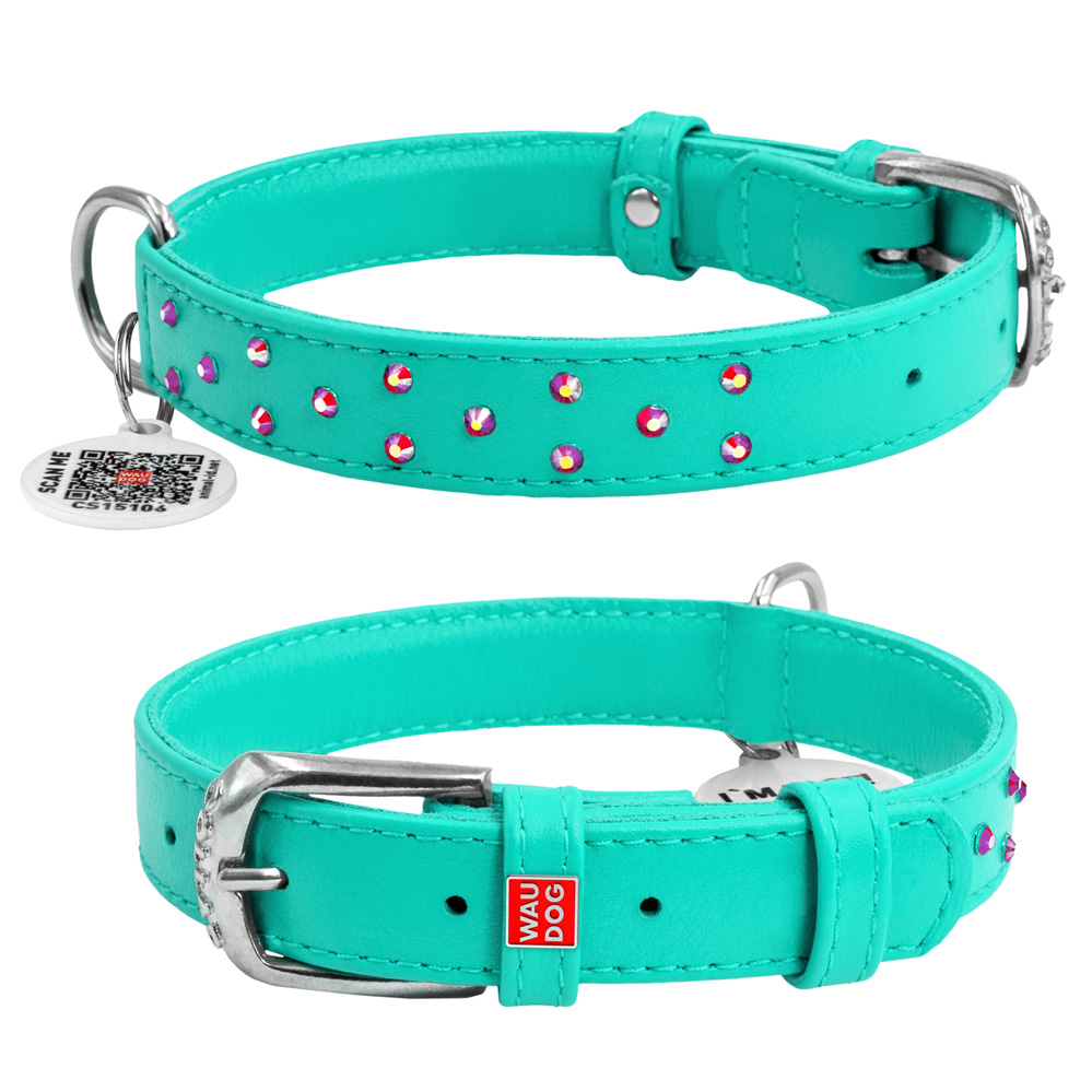 Ошейник Waudog кожаный Glamour с QR паспортом с клеевыми стразами размер M кожа 38-49x2 см