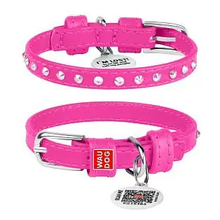 Ошейник Waudog кожаный Glamour с QR паспортом с клеевыми стразами размер XS кожа 18-21x0,9 см