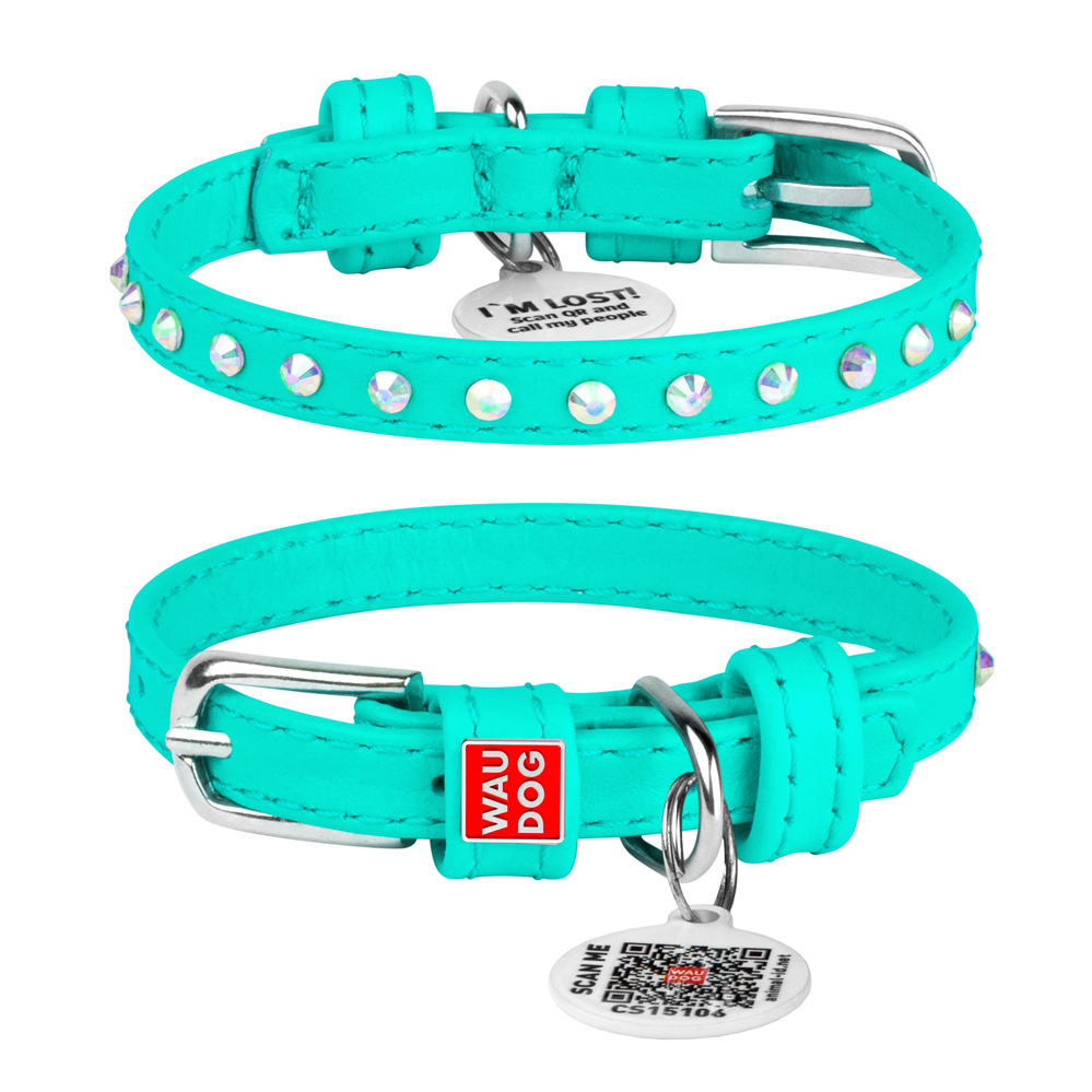 Ошейник Waudog кожаный Glamour с QR паспортом с клеевыми стразами размер XS кожа 18-21x0,9 см