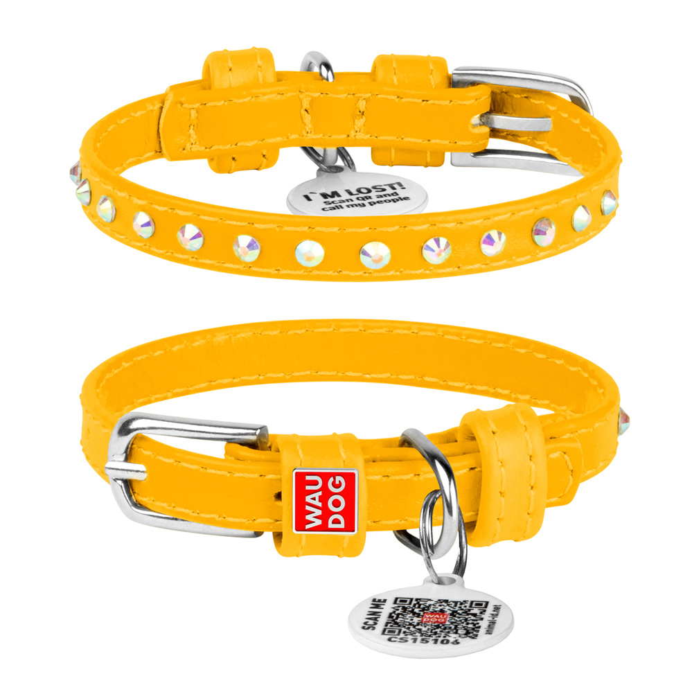 Ошейник Waudog кожаный Glamour с QR паспортом с клеевыми стразами размер XS кожа 19-25x0,9 см
