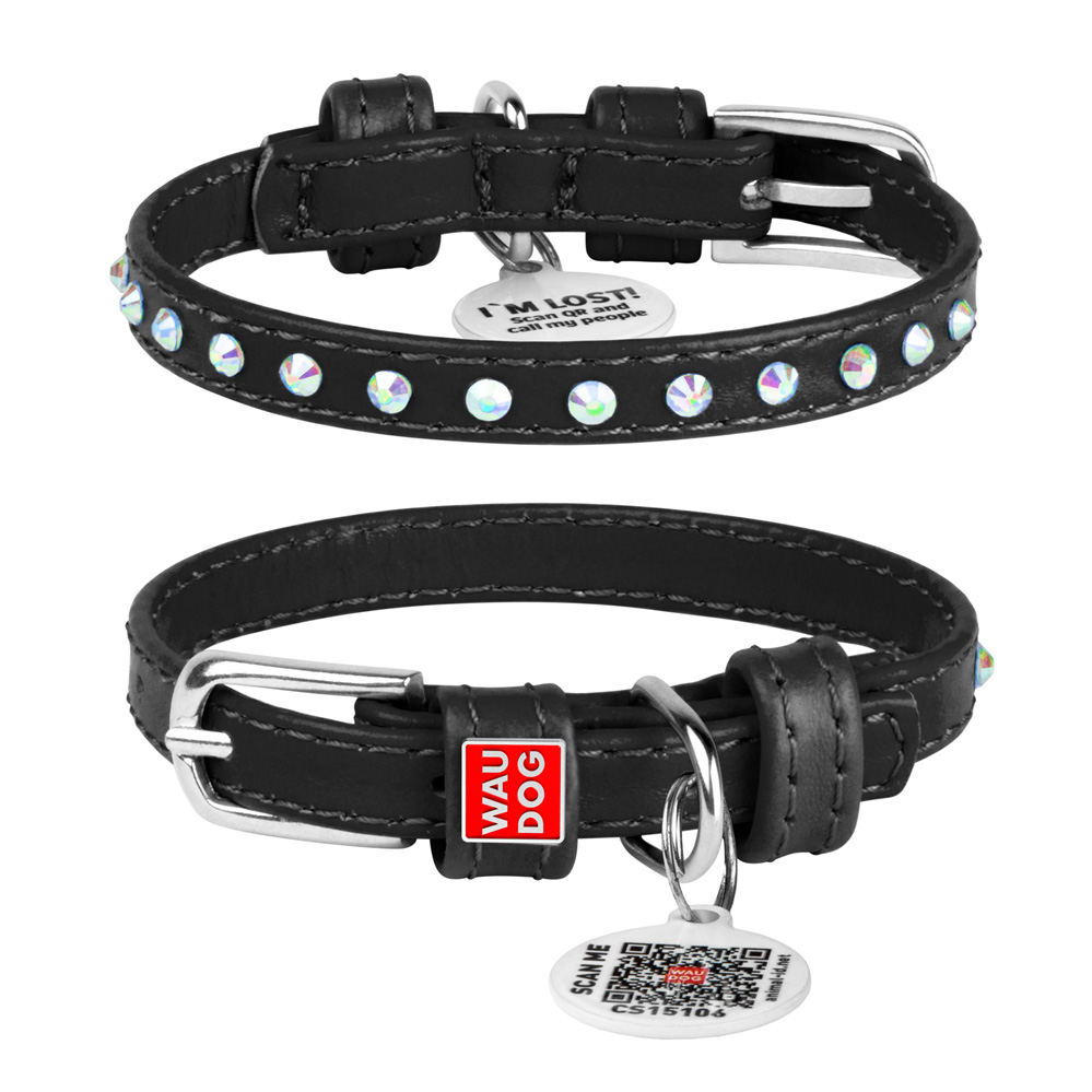 Ошейник Waudog кожаный Glamour с QR паспортом с клеевыми стразами размер XS кожа 19-25x0,9 см
