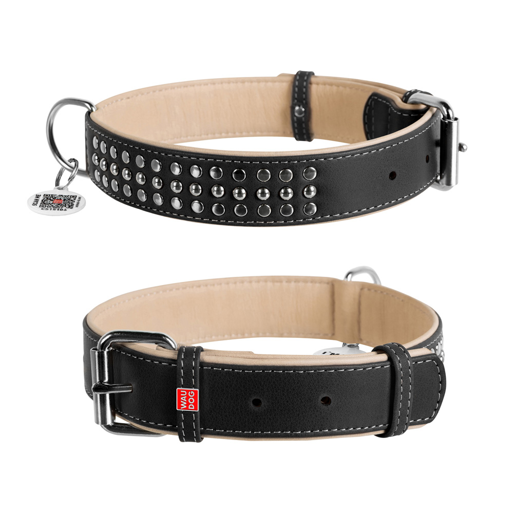 Ошейник Waudog кожаный Soft с QR паспортом металлические украшения размер L кожа 46-60x3,5 см