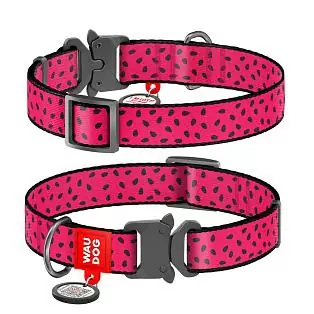 Ошейник Waudog нейлоновый Nylon c QR паспортом рисунок "Арбуз" металлическая пряжка-фастекс размер L нейлон 31-49x2,5 см