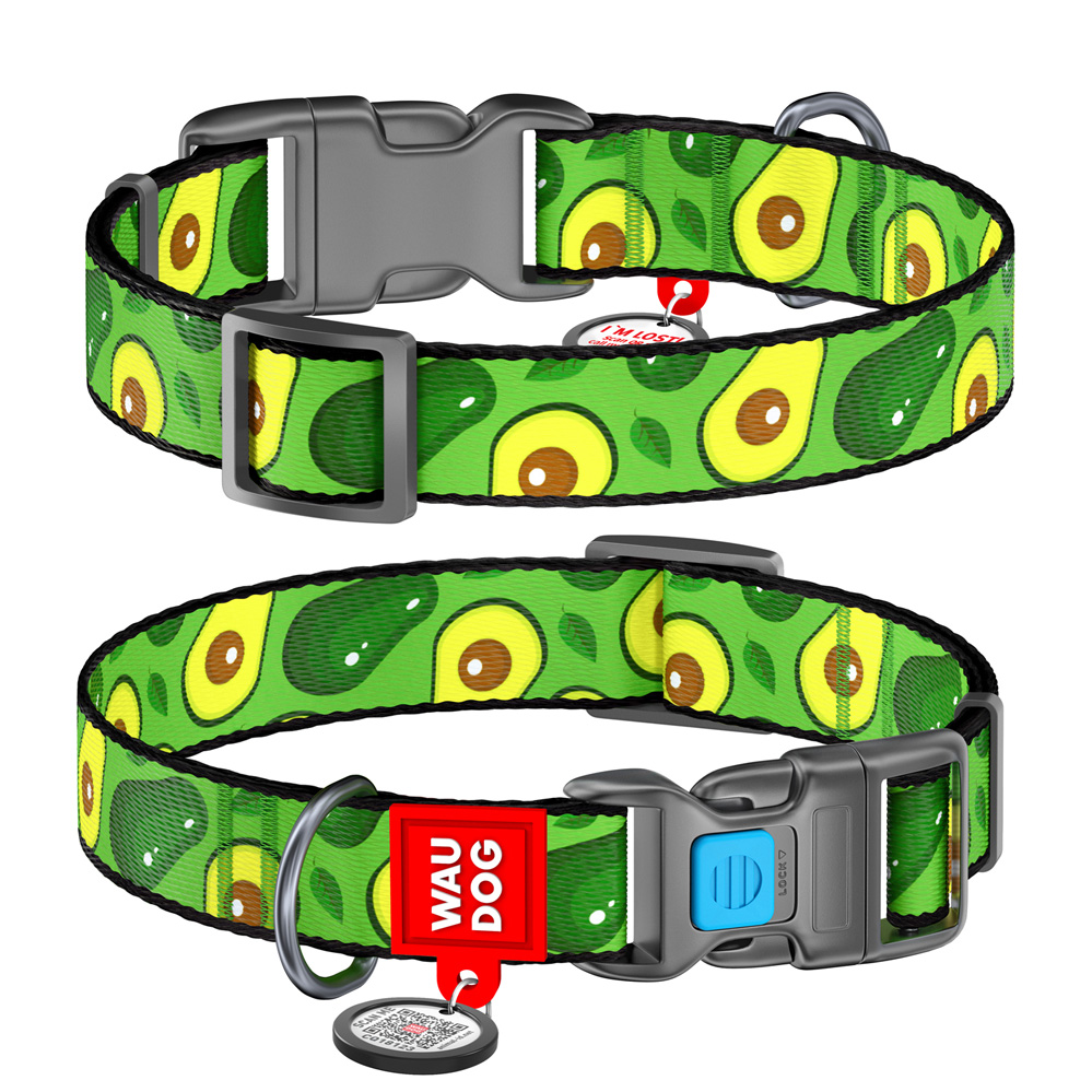 Ошейник Waudog нейлоновый Nylon c QR паспортом рисунок "Авокадо" пластиковый фастекс размер S нейлон 23-35x1,5 см