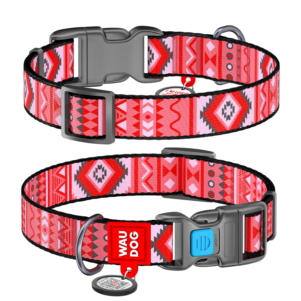 Ошейник Waudog нейлоновый Nylon c QR паспортом рисунок "Этно красный" пластиковый фастекс размер M нейлон 24-40x2 см