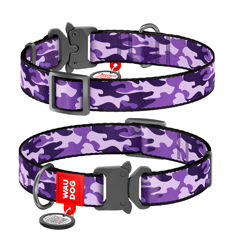 Ошейник Waudog нейлоновый Nylon c QR паспортом рисунок "Фиолетовый камо" металлическая пряжка-фастекс размер M нейлон 24-40x2 см