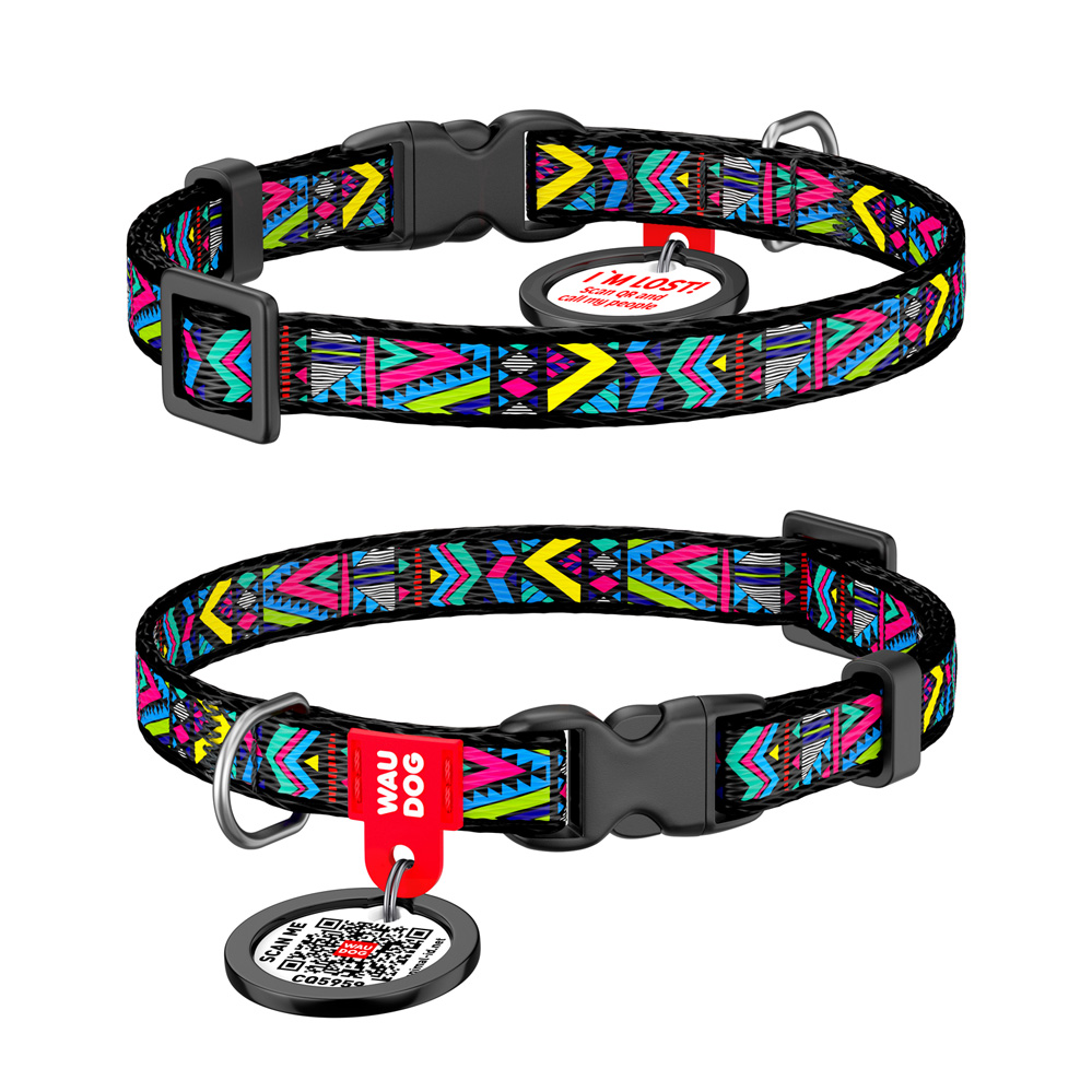 Ошейник Waudog нейлоновый Nylon c QR паспортом рисунок "Инди" пластиковый фастекс размер XS нейлон 20-30x1 см