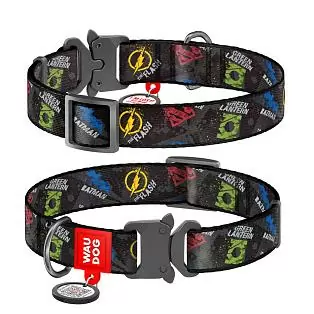 Ошейник Waudog нейлоновый Nylon c QR паспортом рисунок "Лига справедливости" металлическая пряжка-фастекс размер XL нейлон 35-58x2,5 см
