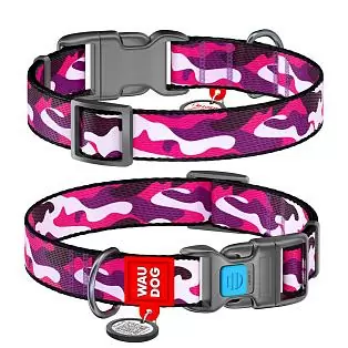Ошейник Waudog нейлоновый Nylon c QR паспортом рисунок "Розовый камо" пластиковый фастекс размер XL нейлон 35-58x2,5 см