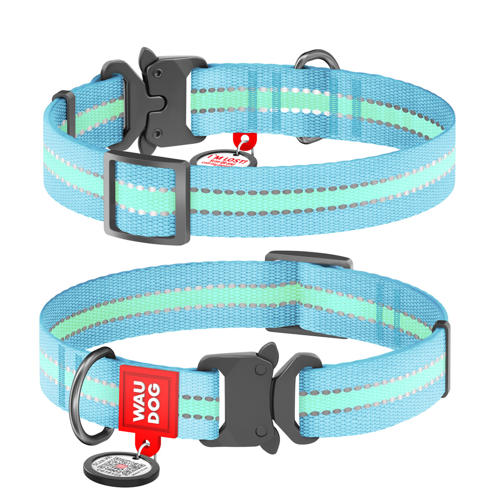 Ошейник Waudog нейлоновый Nylon c QR паспортом светящийся/светоотражающий металлическая пряжка-фастекс размер L нейлон 31-49x2,5 см