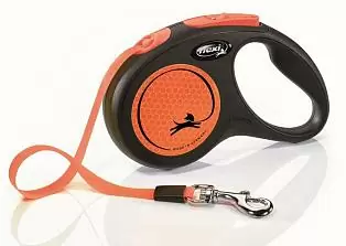 Поводок Flexi Рулетка New Neon S 15 кг неоновый оранжевый ремень 5 м