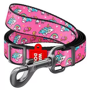 Поводок Waudog нейлоновый Nylon рисунок "Единороги" регулируемый размер S нейлон 152-183x1,5 см