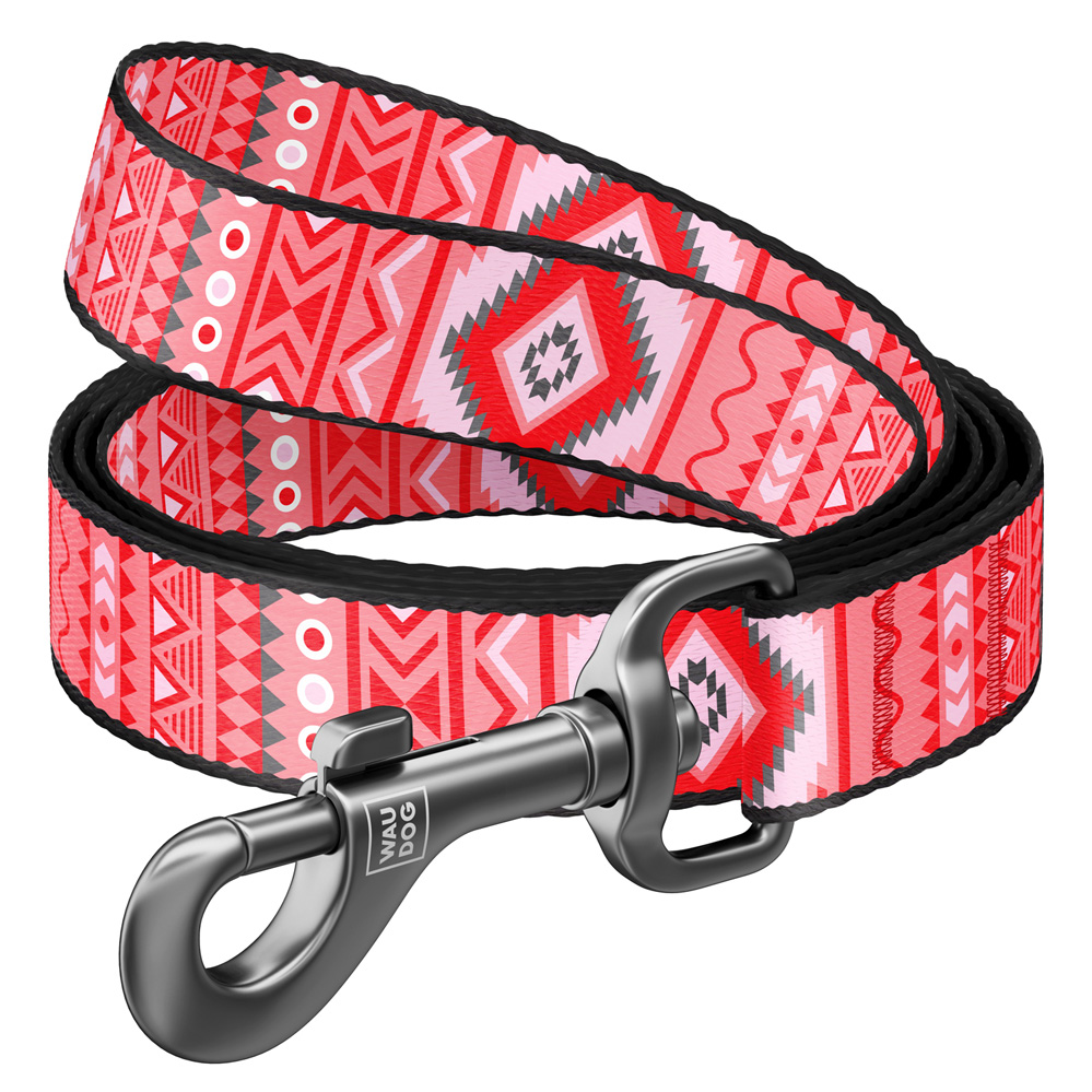 Поводок Waudog нейлоновый Nylon рисунок "Этно красный" размер S нейлон 122x1,5 см