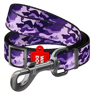Поводок Waudog нейлоновый Nylon рисунок "Фиолетовый камо" регулируемый размер M нейлон 152-183x2 см