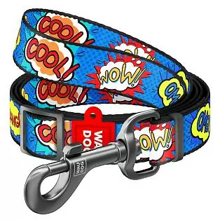 Поводок Waudog нейлоновый Nylon рисунок "ВАУ" регулируемый размер L нейлон 152-183x2,5 см