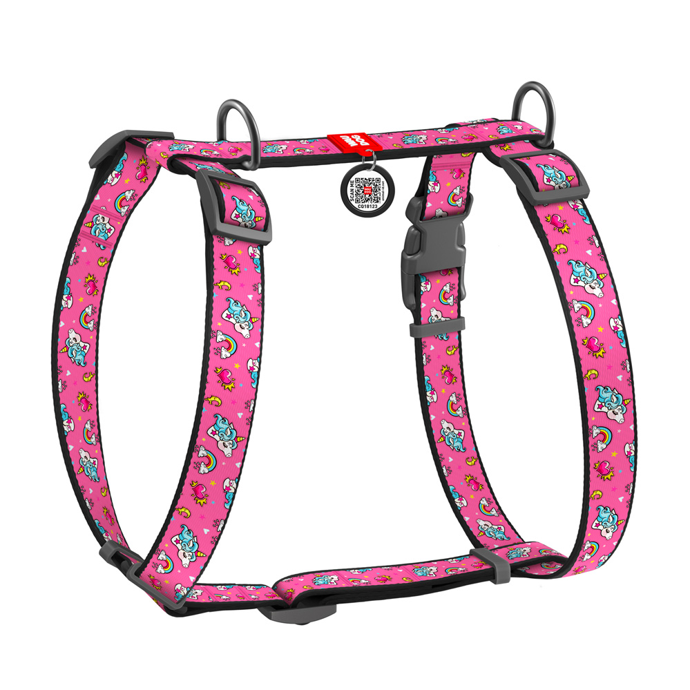 Шлейка Waudog анатомическая H-образная Nylon с QR-паспортом рисунок «Единороги» размер L нейлон 60-100x2,5 см