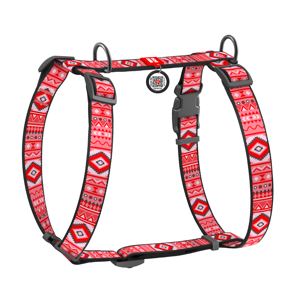 Шлейка Waudog анатомическая H-образная Nylon с QR-паспортом рисунок «Этно красный» размер S нейлон 30-50x1,5 см