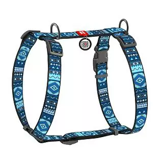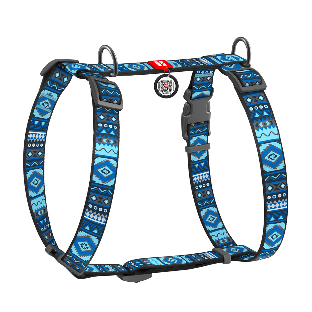 Шлейка Waudog анатомическая H-образная Nylon с QR-паспортом рисунок «Этно синий» размер L нейлон 60-100x2,5 см